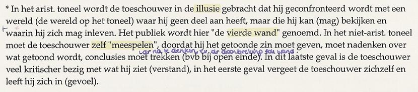 Nog meer onleesbaar gedoe: onder "meespelen" staat een haakje met de tekst "door na te denken, ? door doorbreking vierde wand". Iemand die kan ontcijferen wat daar staat?