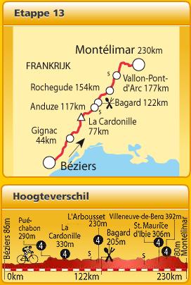 Morgen voor het eerst echt klimmen, al verwacht ik nog geen aardsverschuivingen in het klassement, omdat het maar 2 cols zijn en de finish ver van de laatste col af ligt. Maar ach, wie weet een mooie solo?