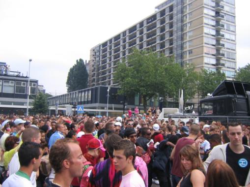 En wat je kan verwchten is een kudde van 40 vrachtwagens met 500.000 mensen eromheen. Door de binnenstad van Rotterdam en dan krijg je dit: